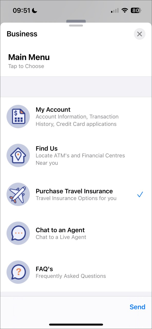 Provide a simple way for your customers to respond with a single tap during an ongoing conversation. You can have between 2 - 5 options from which the customer can select one.