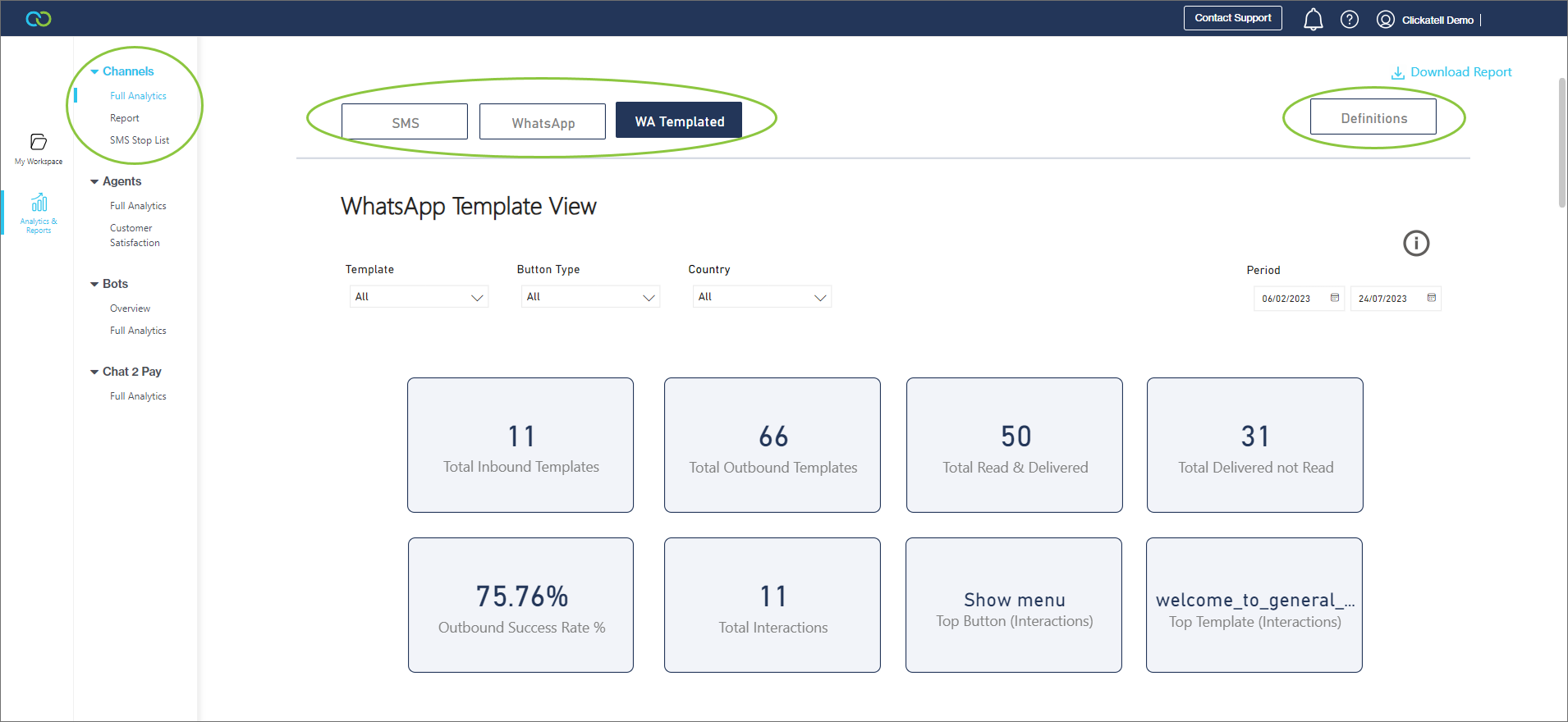 You can find several reports on your WhatsApp and SMS messaging channels and templates in the Clickatell Portal.