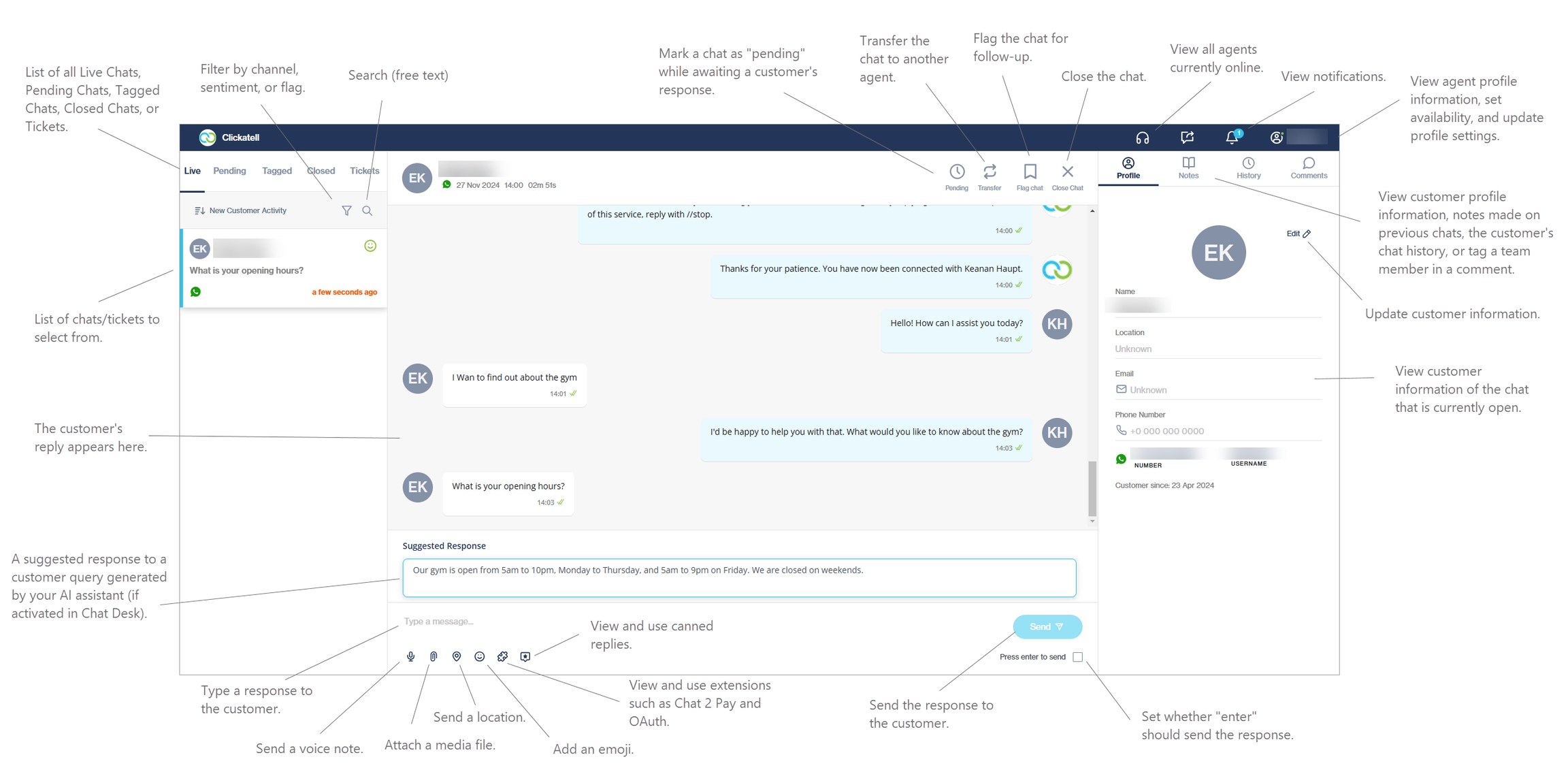 The Agent Desk is the web-based app that agents use to engage with customers via their preferred channel.