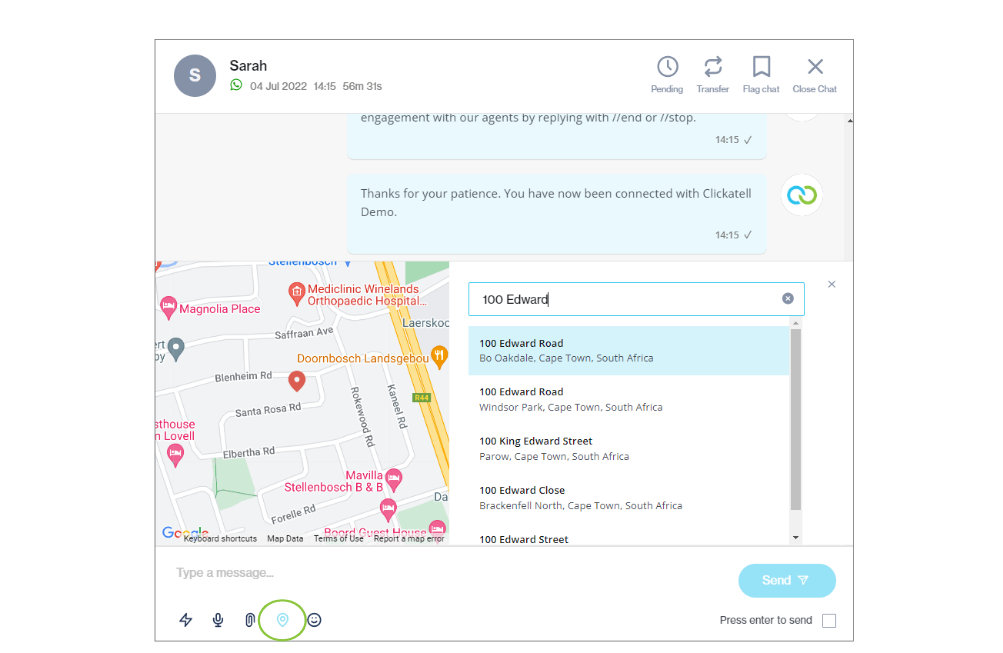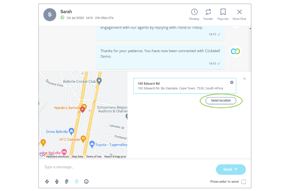 If you are using the SMS channel, the location will be shared as a link that the customer can click.