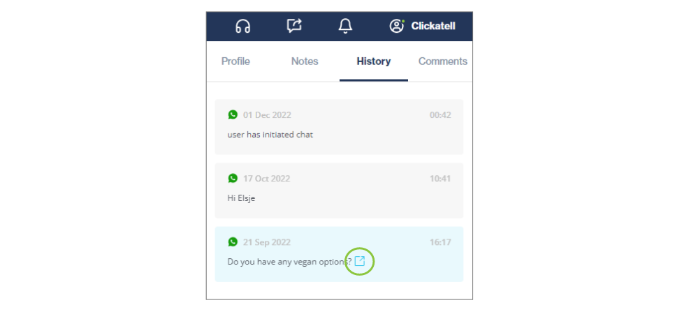 Click the launch icon to open the historic chat (read-only).