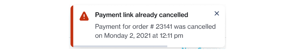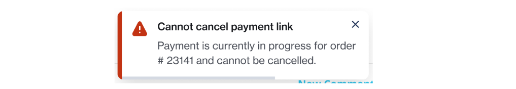 If a payment link is already canceled and the agent tries to cancel again, the following status message is shown: