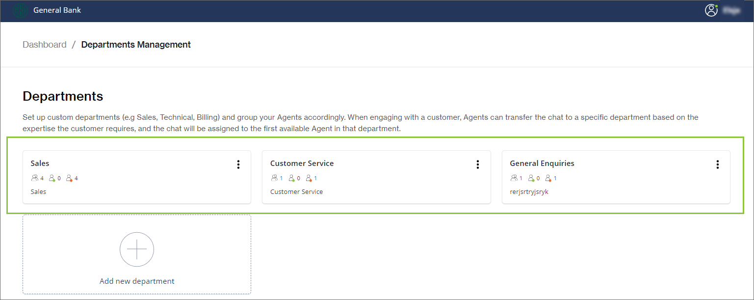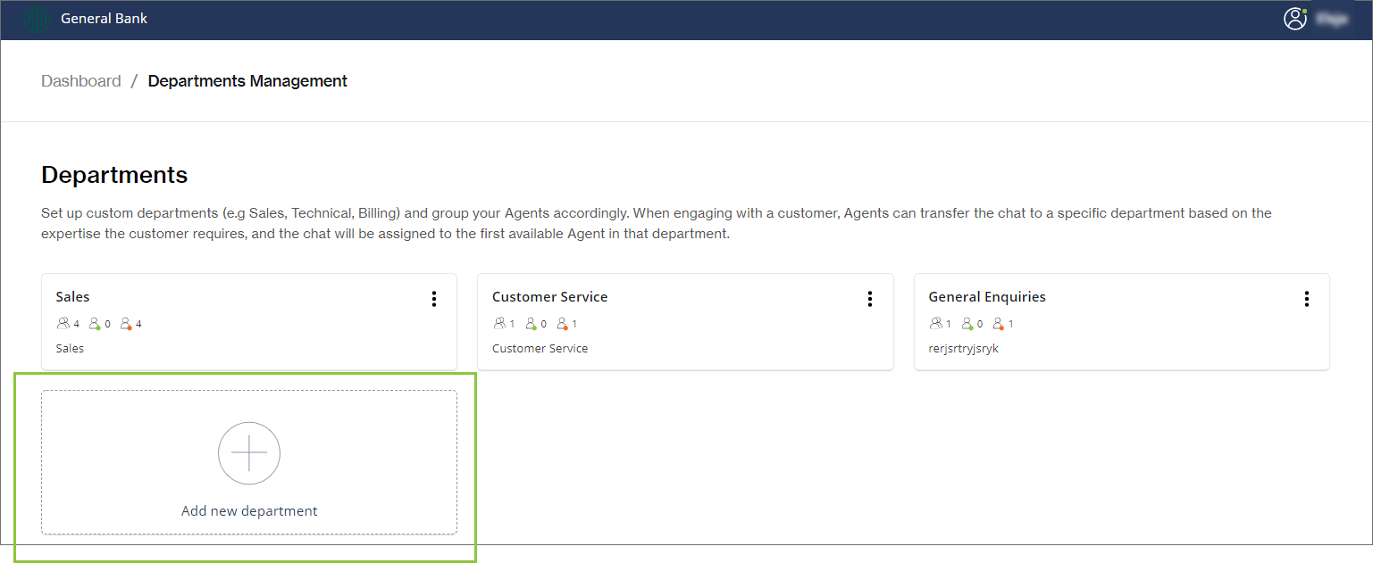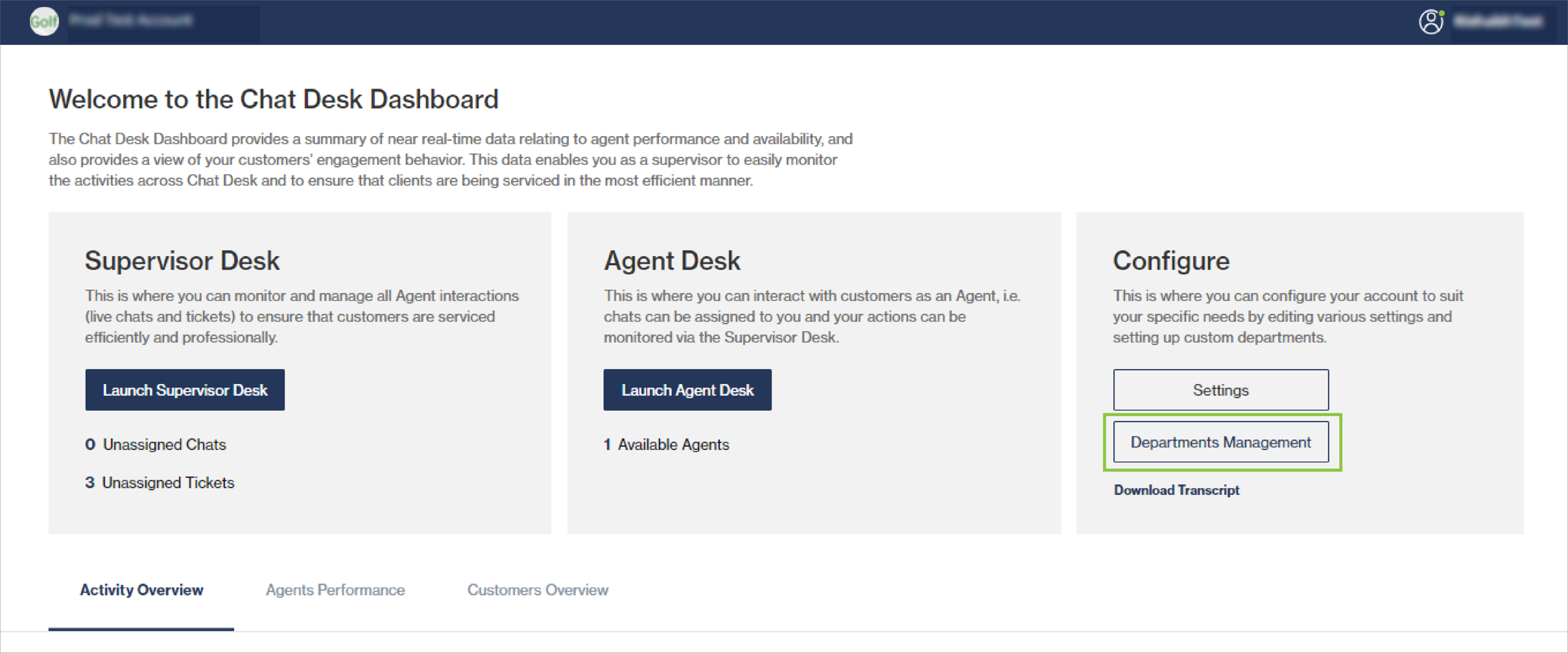 From the Chat Desk Dashboard, click Departments Management.