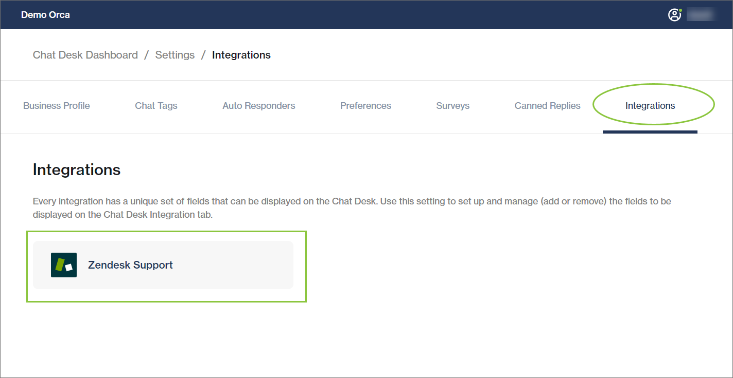As an admin user, you can add or remove the fields to be displayed on the Chat Desk Integration tab.