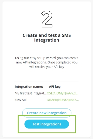 Step 2.2 Create and test an SMS integration in Sandbox