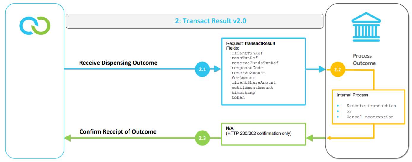 The Transact Result API is the second point of interaction between Clickatell and the bank where Clickatell confirms the outcome of dispensing the product with the bank, and the bank can either proceed with the payment or cancel the fund reservation.