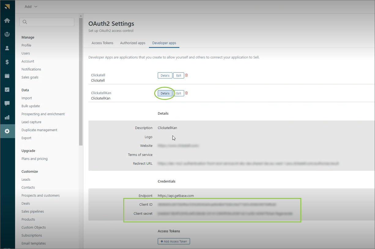 Example: https://api.getbase.com