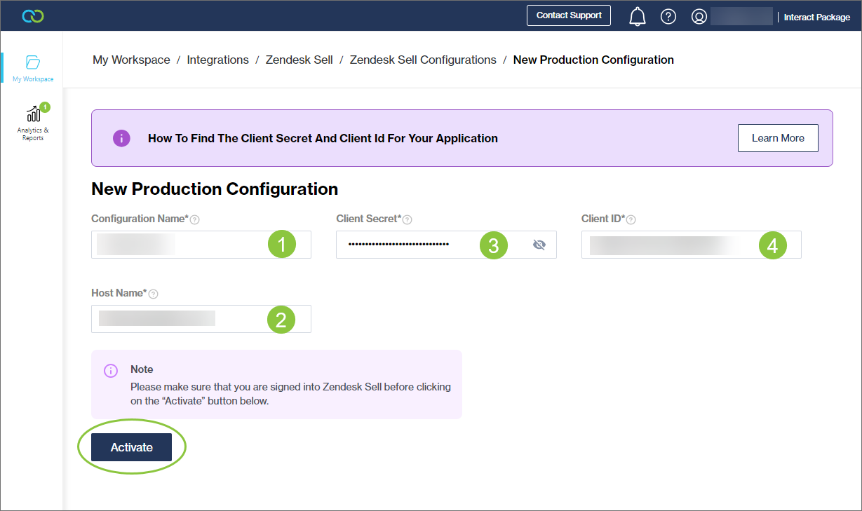 If you haven't added a Developer App in Zendesk Sell for this integration yet, please refer to this page first.