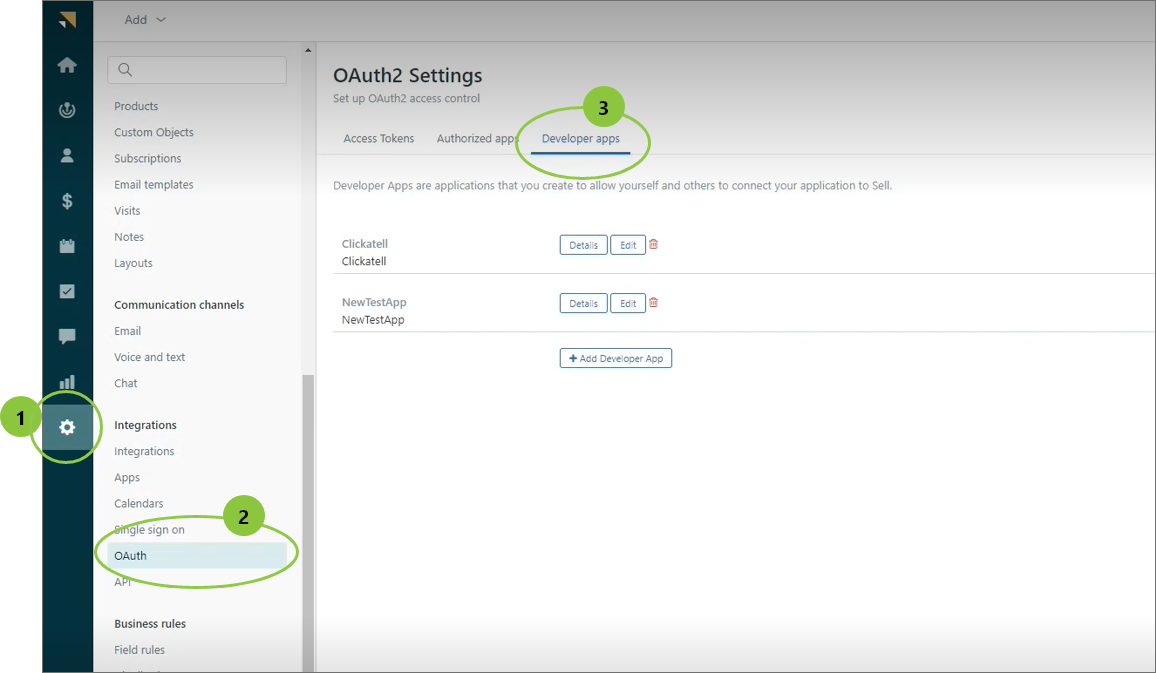 Next to the Developer App you want to integrate, click the Details button.